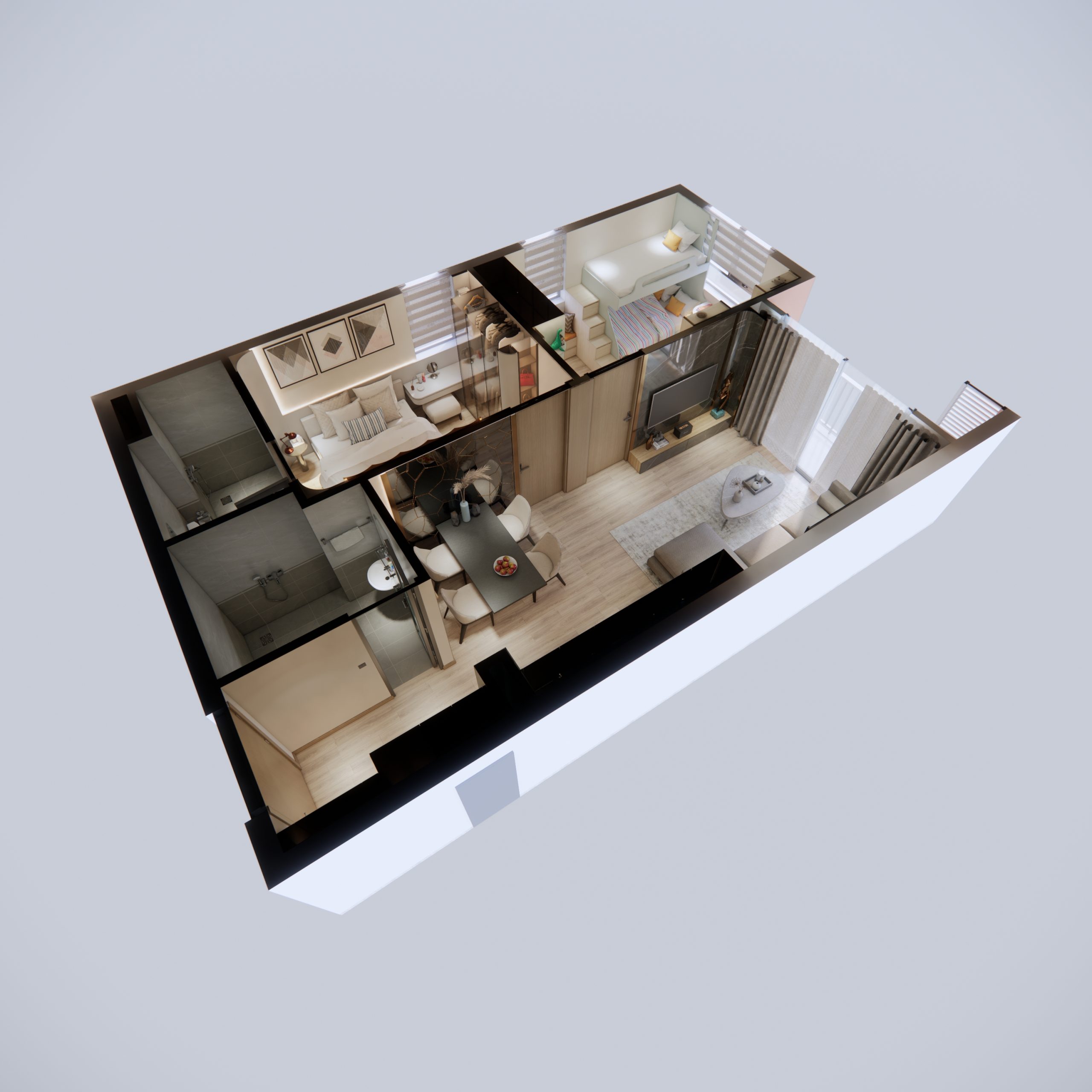 Các căn nhà tại Famia Sông Công được thiết kế hiện đại, trẻ trung, tối ưu công năng với khu đỗ xe riêng, phòng khách liền bếp, mang không gian rộng rãi. Bàn giao nội thất cơ bản, cư dân có thể dọn vào ở ngay, tận hưởng cuộc sống tiện nghi ngay trong tầm tay.